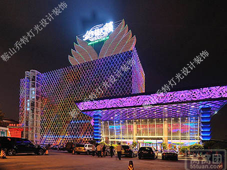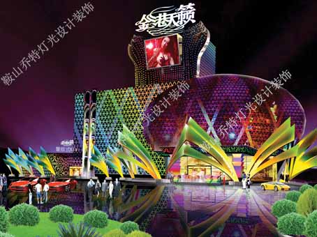 鞍山金港天籟位于商業(yè)繁華的鐵西區(qū)人民路,總營業(yè)面積達(dá)8000平方米,投資4000余萬元建設(shè),目前是鞍山市規(guī)模最大、包房總數(shù)最多、設(shè)施最為豪華的夜場。它以細(xì)致周到的服務(wù),先進(jìn)完整的配置設(shè)施引領(lǐng)著鞍山市娛樂新方向。整體LED室內(nèi)外燈光工程全部由鞍山喬特?zé)艄庋b飾廣告有限公司設(shè)計(jì)與制作。